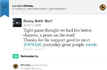 You are respectfully reminded that all content on this website is subject to copyright and Wolverhampton Wanderers London Supporters' Club ("London Wolves") official website must be acknowledged as the original source. Please contact the webmaster for permissions to use any content at webmaster@londonwolves.com All materials/designs on the website are © WWLSC. “London Wolves® is a registered Trade Mark.. London Wolves Ltd is registered in England No: 05329824 Registered Office: 100 Fairthorn Road London SE7 7 FW